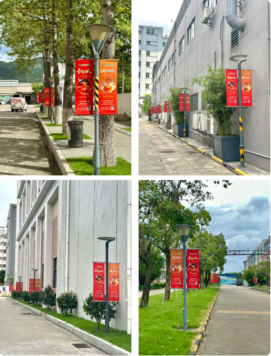 与此同时,园区主干道两侧的道旗也焕然一新,双节主题画面与“喜迎国庆”、“月满中秋”等祝福语交相辉映,为整个园区点缀着双节的氛围,处处洋溢着浓厚而喜庆的节日气息。