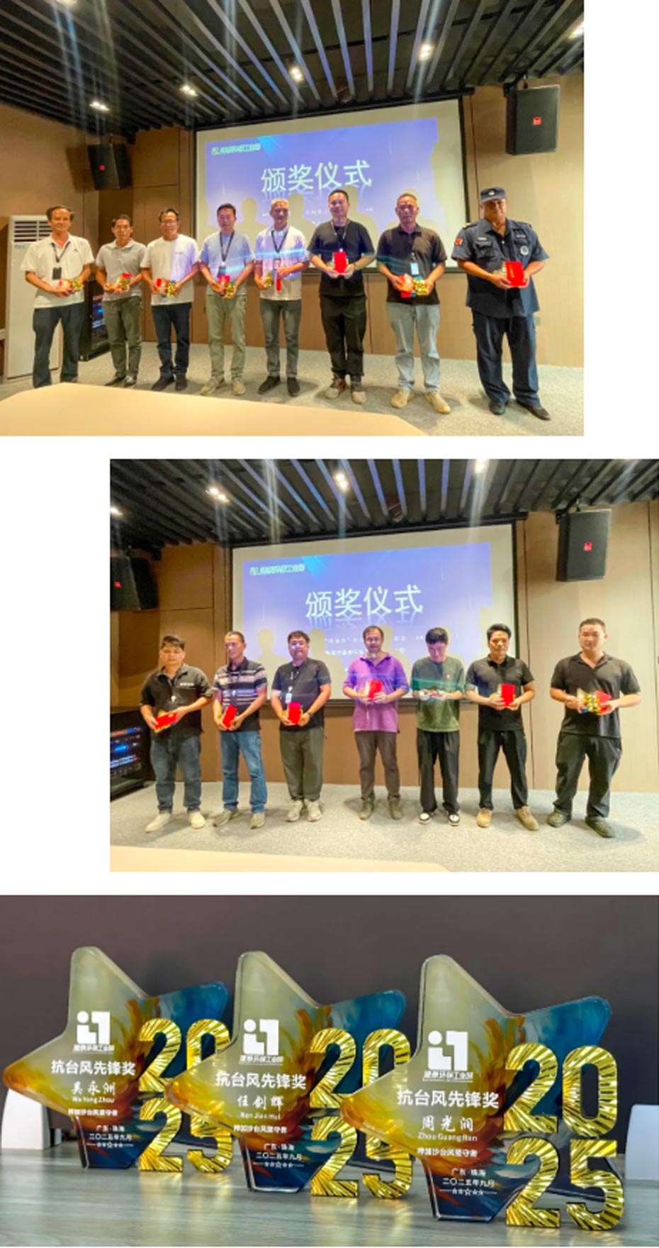 为表彰在抗击台风中表现突出的员工,公司特别设立“抗台风先锋奖”。本次共有33人获此殊荣,其中15名代表上台接受表彰。