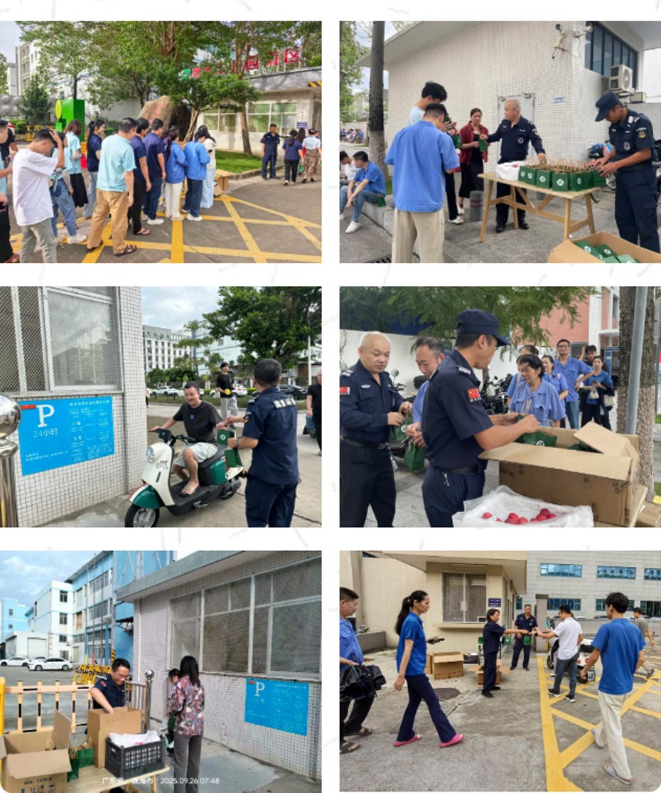 9月26日清晨,秋日朝阳为园区披上温暖金装。在园区4个入口处,工作人员以灿烂的笑容迎接每一位园区员工,将一份份节日礼品传递到大家手中,"节日快乐"的问候声与欢声笑语交织。而这份礼物不仅香甜在口,更温暖于心。