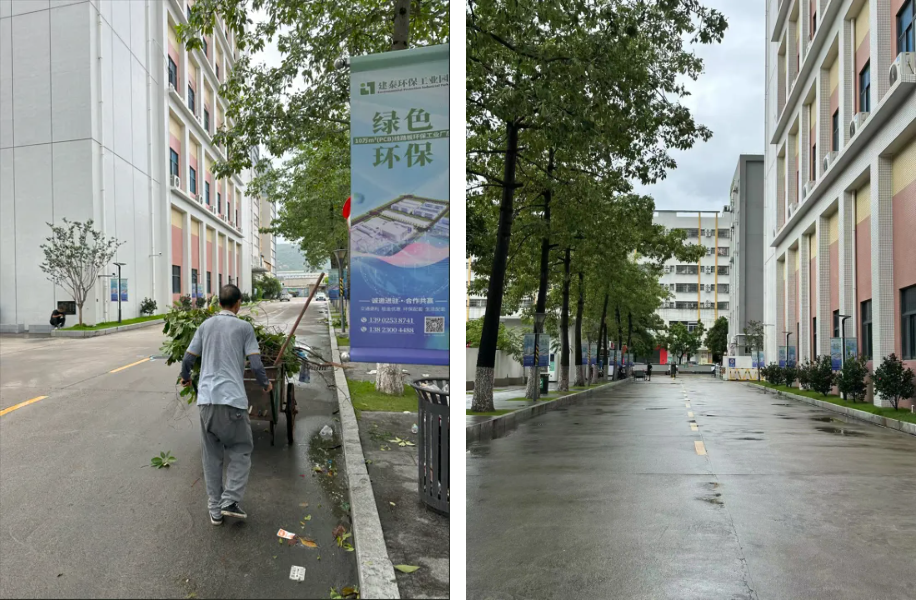 7 月 20 日,台风 “韦帕” 掠过珠海,给城市带来了狂风暴雨。面对来势汹汹的台风,珠海建泰环保工业园提前部署、积极应对,在台风前后采取了一系列有力措施,全力保障园区的安全与稳定。